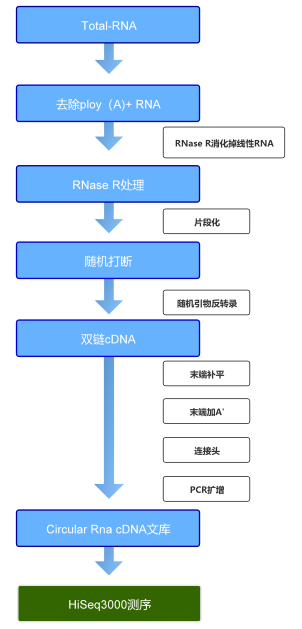 环状RNA测序是新兴的转录组测序技术。过去普遍认为细胞内的非编码RNA多以线型存在,近年来越来越多的研究发现,环状RNA在哺乳动物细胞内的表达量远高于普遍认识水平。环状RNA可以参与基因的表达调控,例如封闭miRNA的作用、调节本位基因的表达等,是长链非编码RNA研究中的一个新的研究热点。